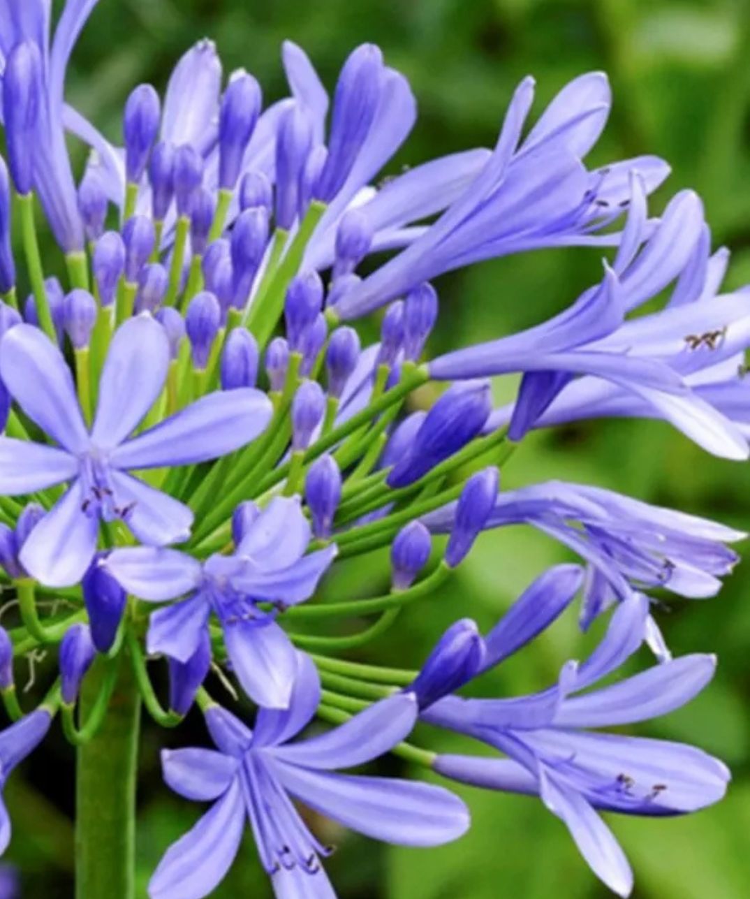 Sempreverde, foglie strette, verdi, fiori colore blù medio, raggiunge un'altezza di cm 80.