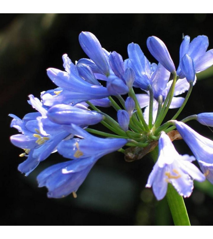 L'Agapanthus 'Monique' ha foglie a forma di cintura e fiorisce abbondantemente su steli robusti con ombrelle rotonde di fiori blu intenso a forma di tromba con una tonalità più chiara all'interno. Richiede un terreno ben drenato, umido e fertile in pieno sole. Non deve essere lasciato asciutto durante la crescita. Moderatamente resistente fino a -5°C. è più sicuro piantarlo in un luogo riparato e coprirlo con una copertura invernale a foglie.