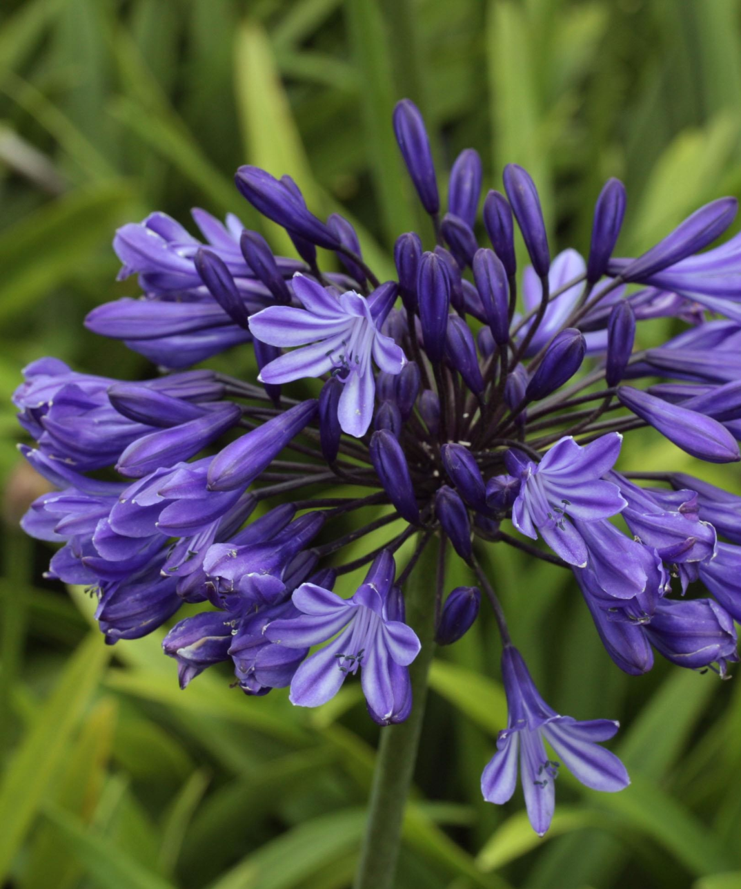A foglia caduca, foglie colore verde scuro, fiori colore blu scuro, formanti infiorescenze rotonde, grandi, molto attraenti, raggiunge un'altezza di cm 60.