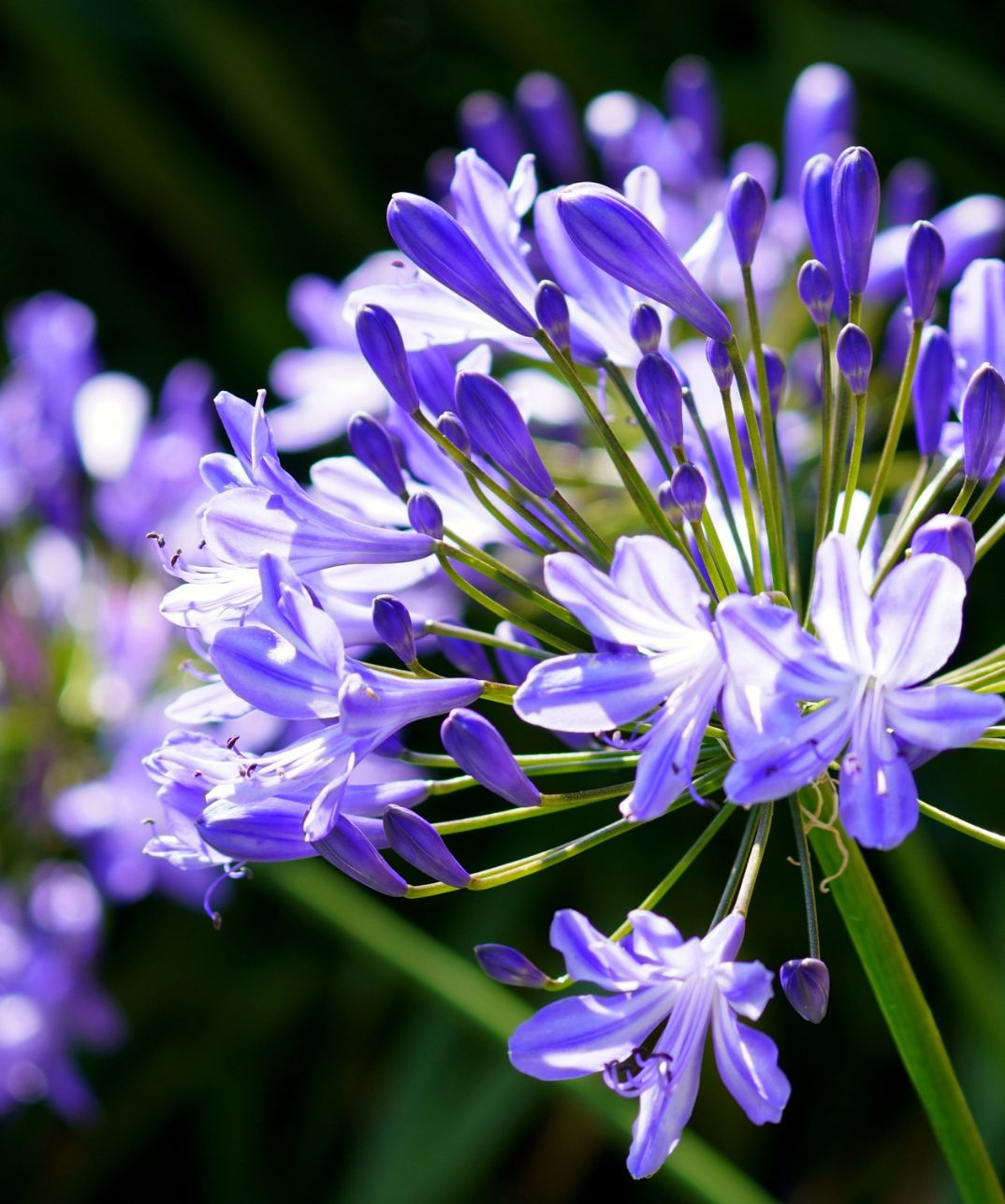 Semi- sempreverde, foglie erette, verde, fiori di uno straordinario blu, raggiunge un'altezza di cm 80.