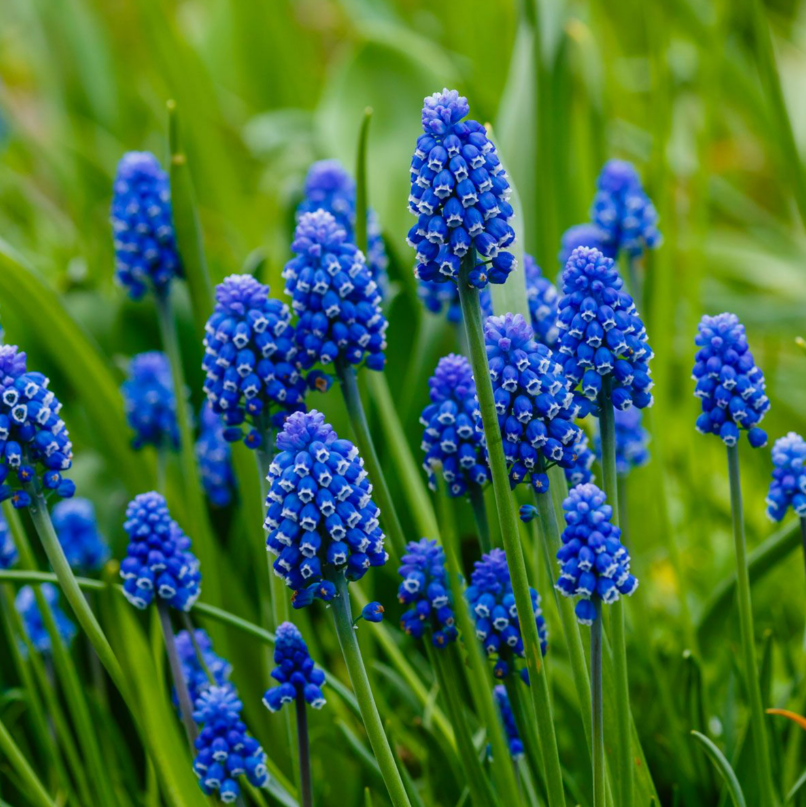 I muscari (o grape hyacinths in inglese) sono piccole piante bulbose primaverili, apprezzate per i loro graziosi grappoli di fiori a campanella che ricordano l'uva, prevalentemente di colore blu. Originari dell'Europa meridionale, del Nord Africa e dell'Asia, sono facili da coltivare, resistenti e possono creare splendidi tappeti fioriti, sia in giardino che in vaso.