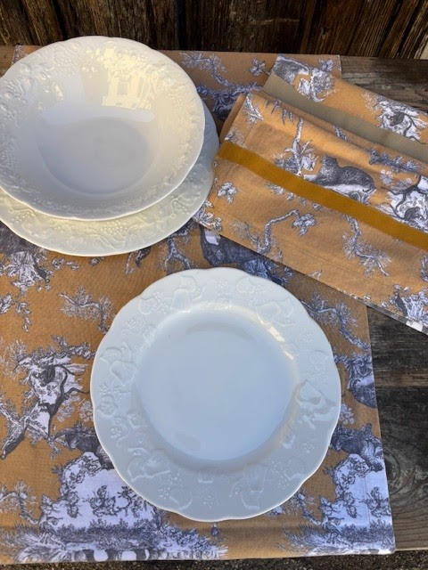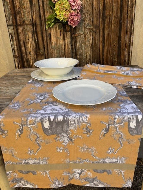 Runner in toile de jouy con finitura in grosgrain di cotone col. Senape o col. Naturale dimensioni 140x70 cm