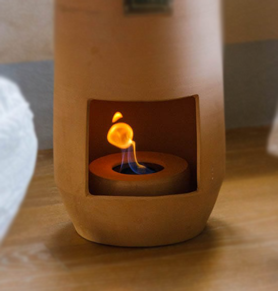 Bruciatore da 1 litro bioetanolo per Camini ecologici. Realizzato in acciaio inox inossidabile decorato con copertura in terracotta.