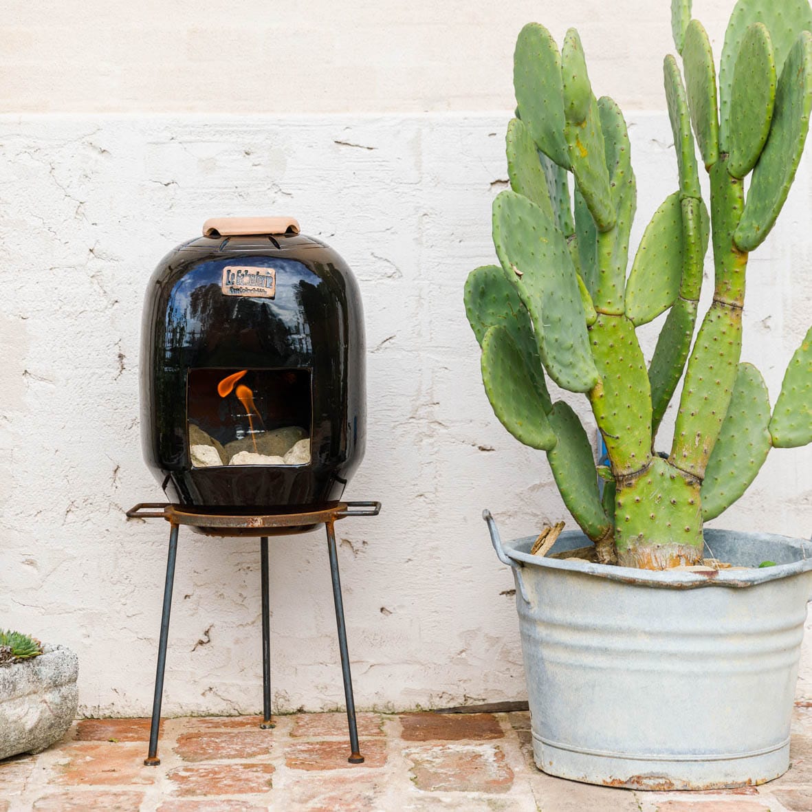 Camino al bioetanolo piccolo in terracotta smaltato nero