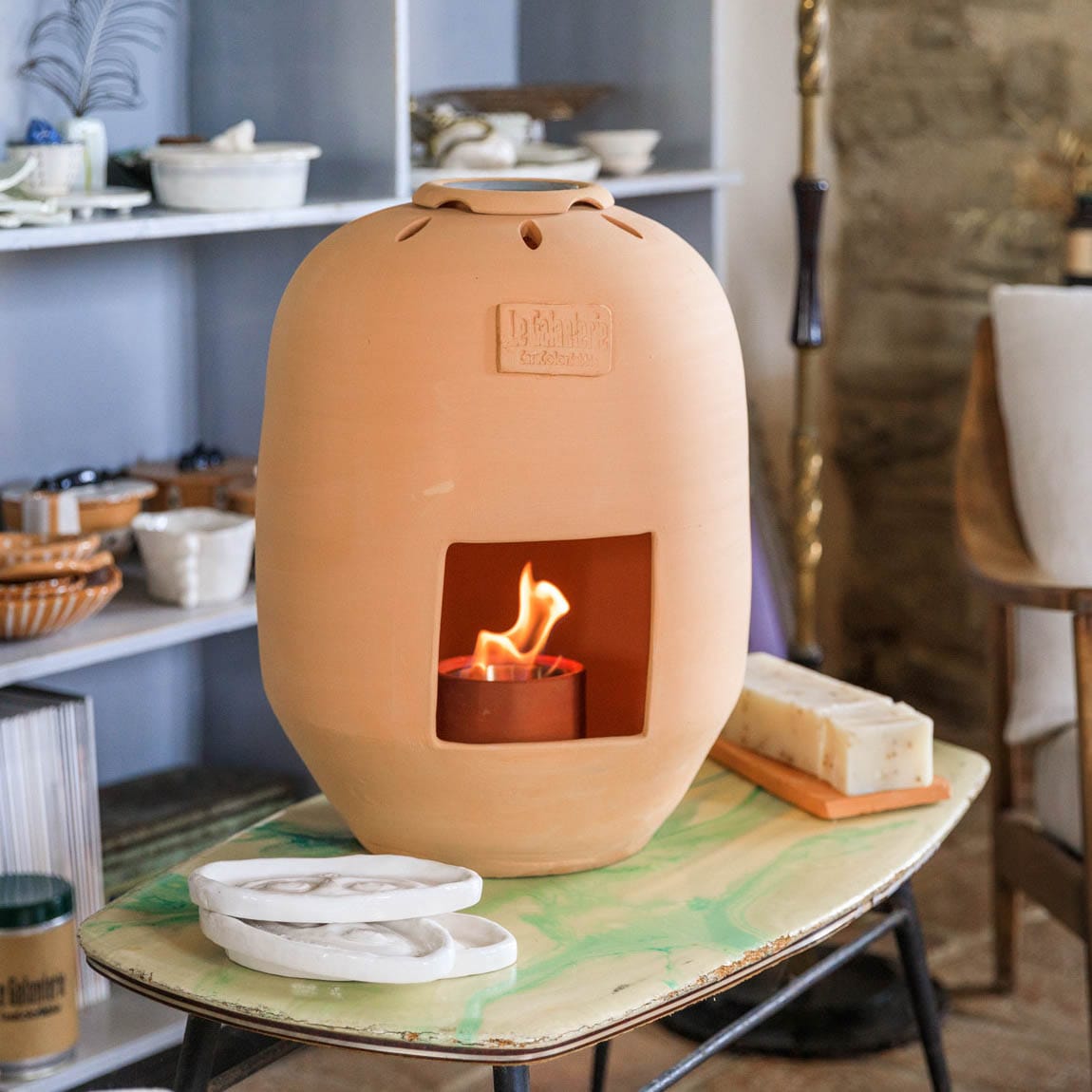 Corredato di bruciatore in acciaio inox inossidabile da 800 ml, completo di copertura decorativa in terracotta.