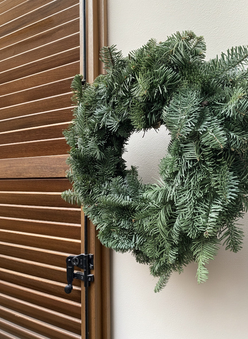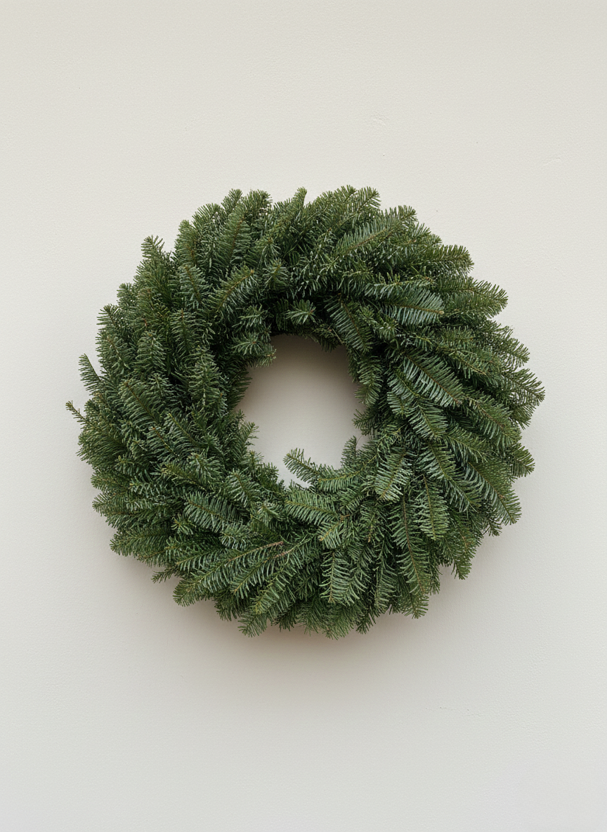 Ghirlanda in pino Nobilis realizzata con rami di pino ricchi e voluminosi, questa ghirlanda è piena e dall’aspetto naturale. Ideale per decorare portoni d’ingresso, pareti o come elegante centrotavola per le festività.