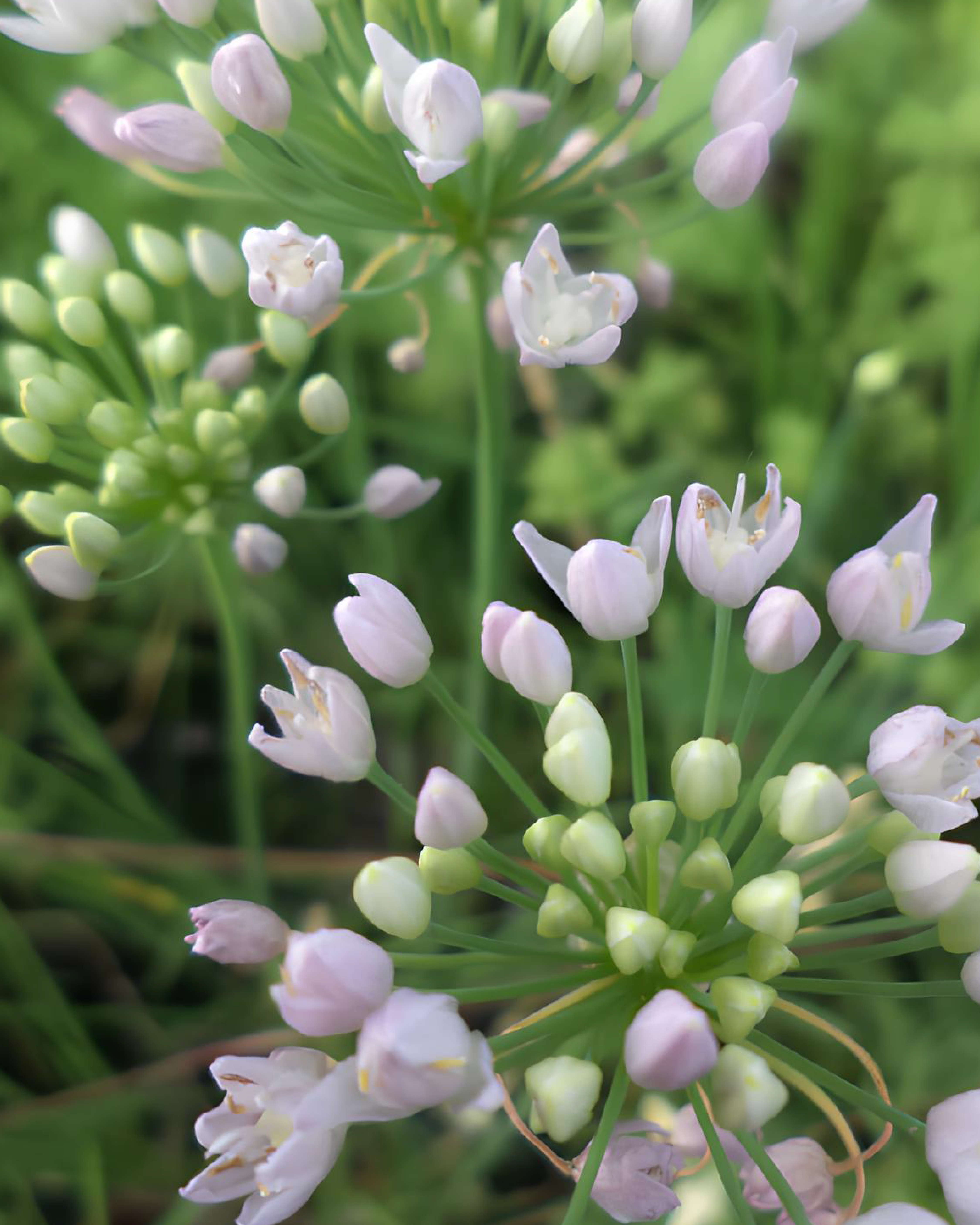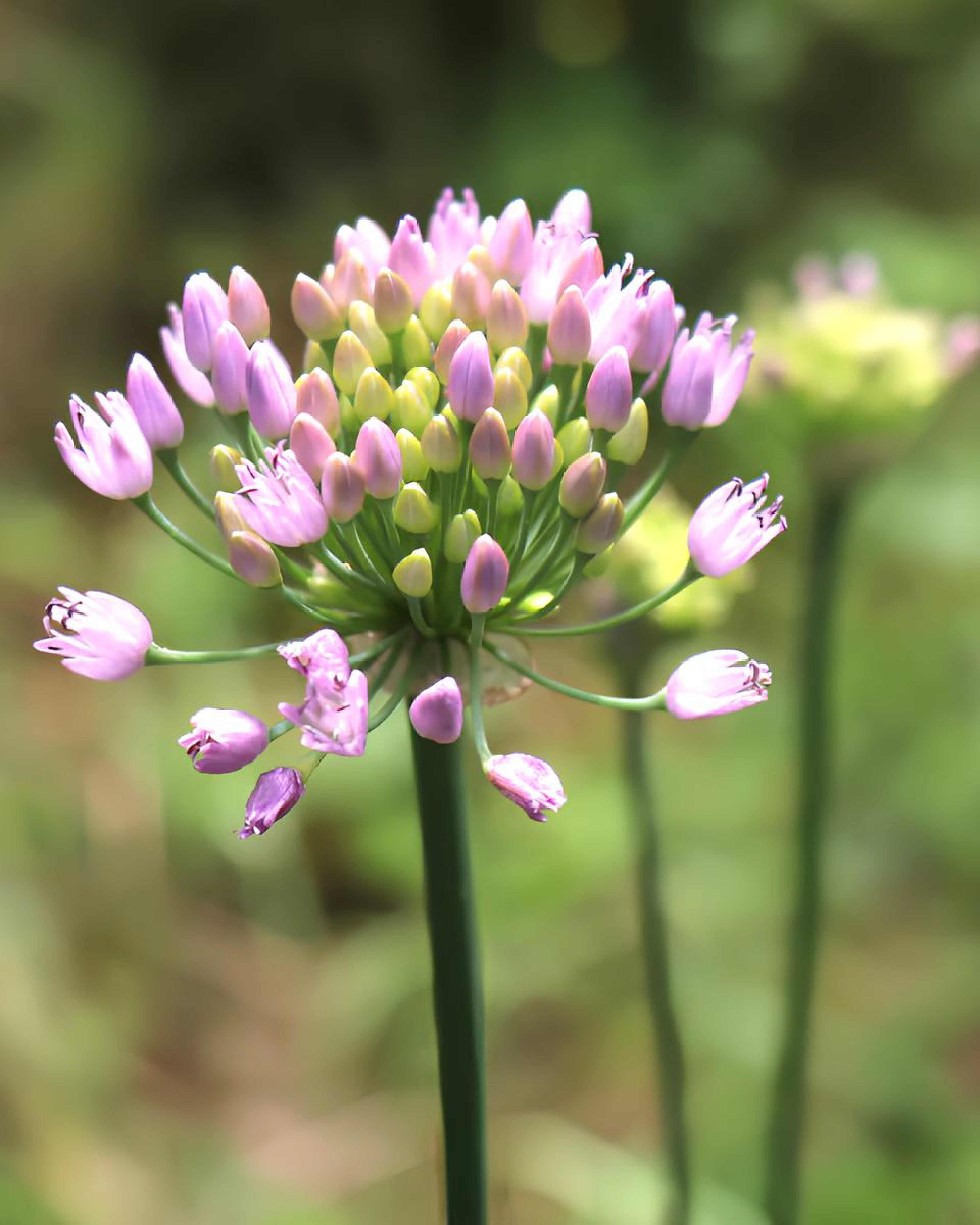 Durante il periodo estivo sviluppa infiorescenze a ombrella di colore rosa-lilla, decorative e leggere, perfette per bordure e aiuole naturali. Foglie, fiori e bulbi sono commestibili e possono essere utilizzati in cucina come alternativa delicata al classico aglio, con un aroma più morbido e piacevole.