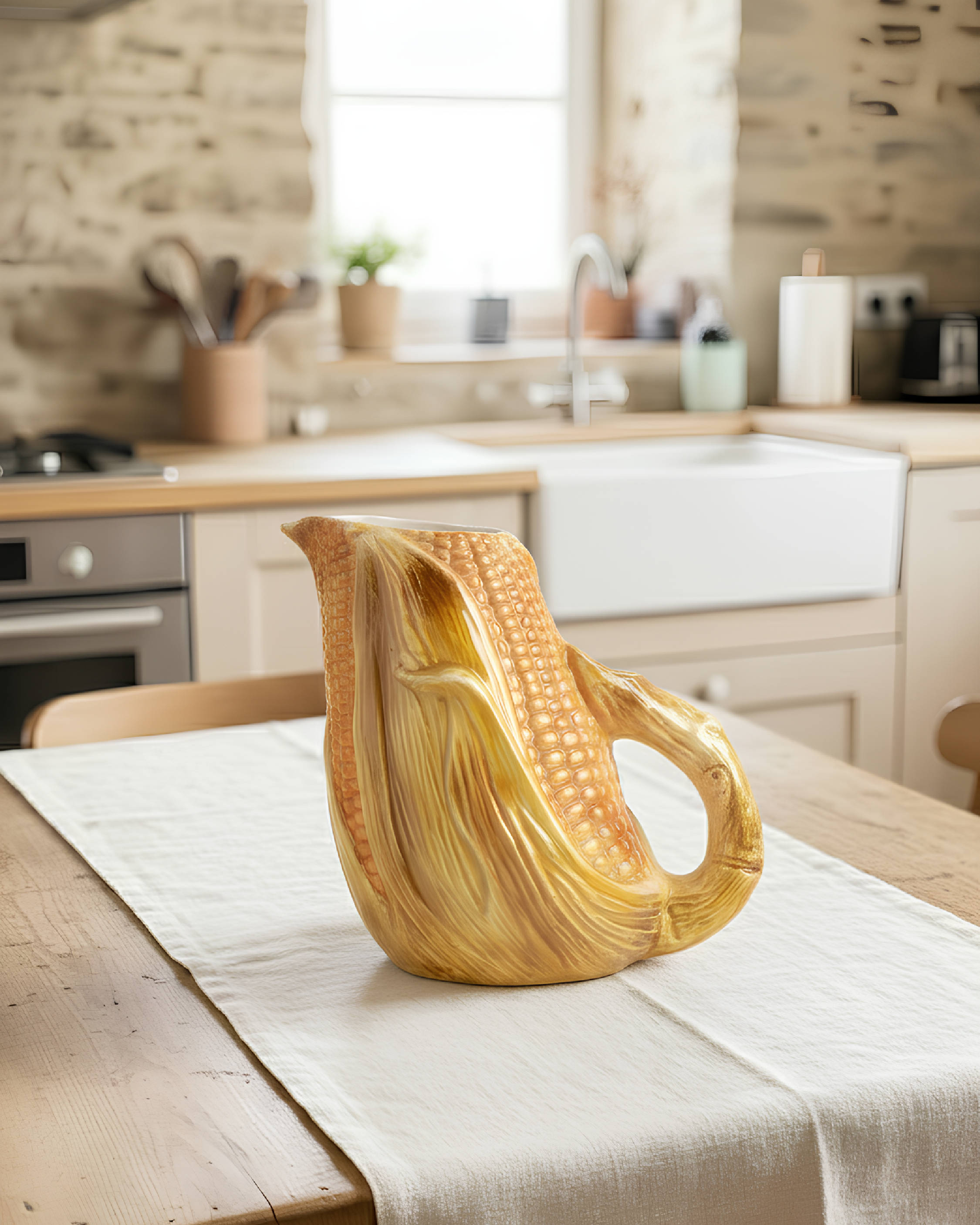Iconica caraffa in ceramica smaltata a forma di pannocchia, realizzata negli anni ’70 dalla storica manifattura italiana Bitossi. Le linee scultoree e i colori caldi richiamano l’estetica pop e rustica del design domestico di quegli anni. Perfetta come brocca, vaso o oggetto decorativo per una tavola creativa.