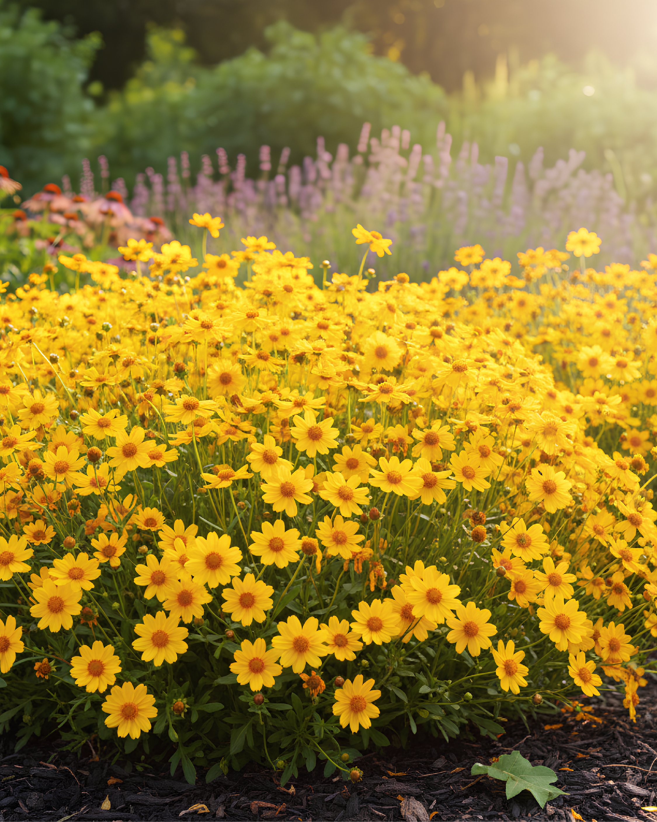 La Coreopsis grandiflora ‘Solar Mellow’ è una perenne compatta e fiorifera, ideale per aiuole soleggiate, bordure e composizioni miste. I fiori dal colore giallo vivo con centro rosso illuminano il giardino dall’inizio dell’estate fino a ottobre, mentre il fogliame verde brillante valorizza la pianta anche tra una fioritura e l’altra.