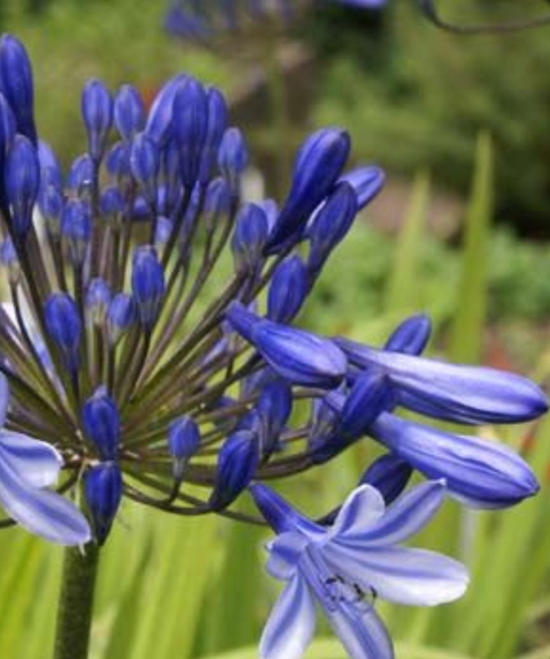 Fiori di colore blu intenso, portati da steli robusti, formando infiorescenze compatte
