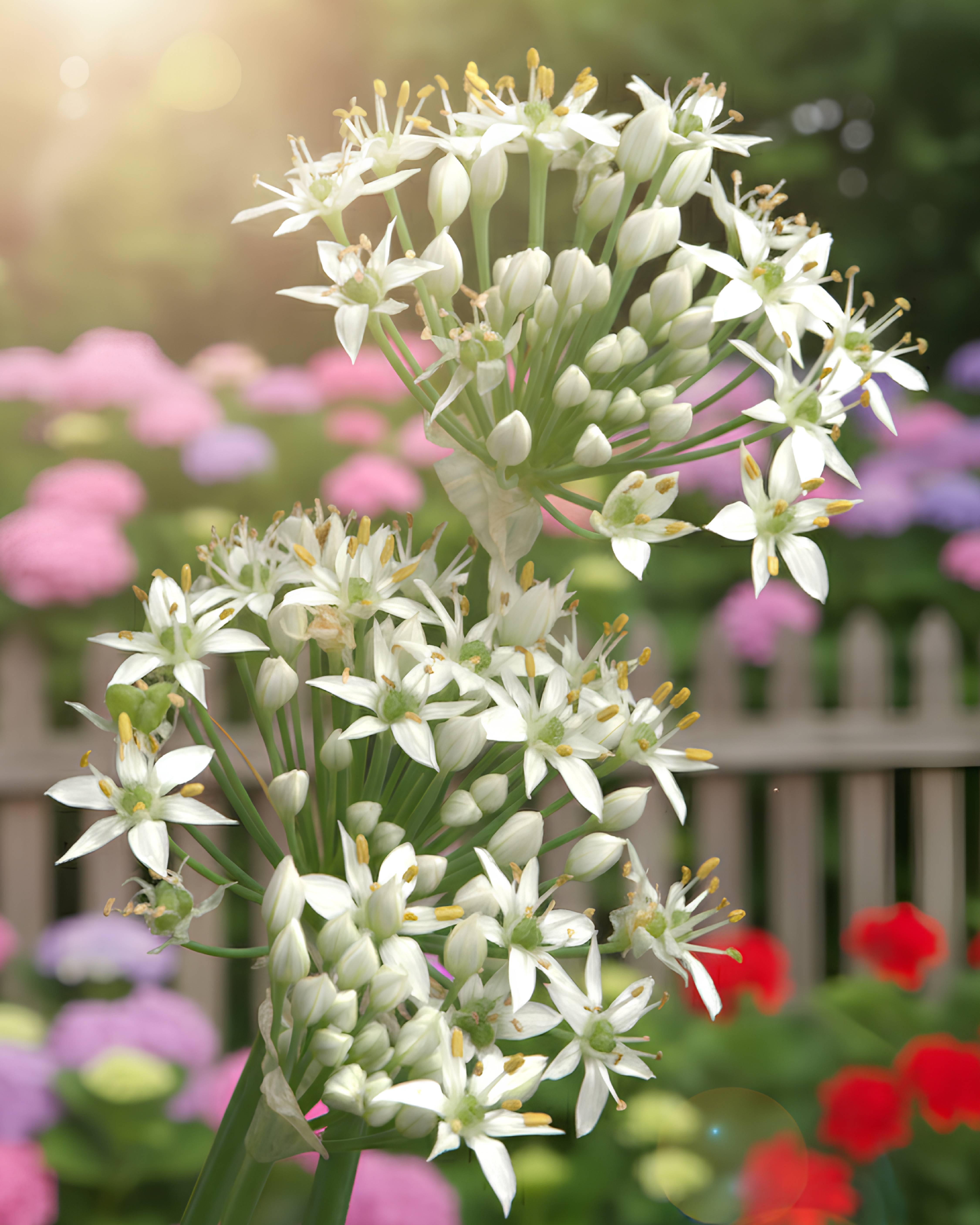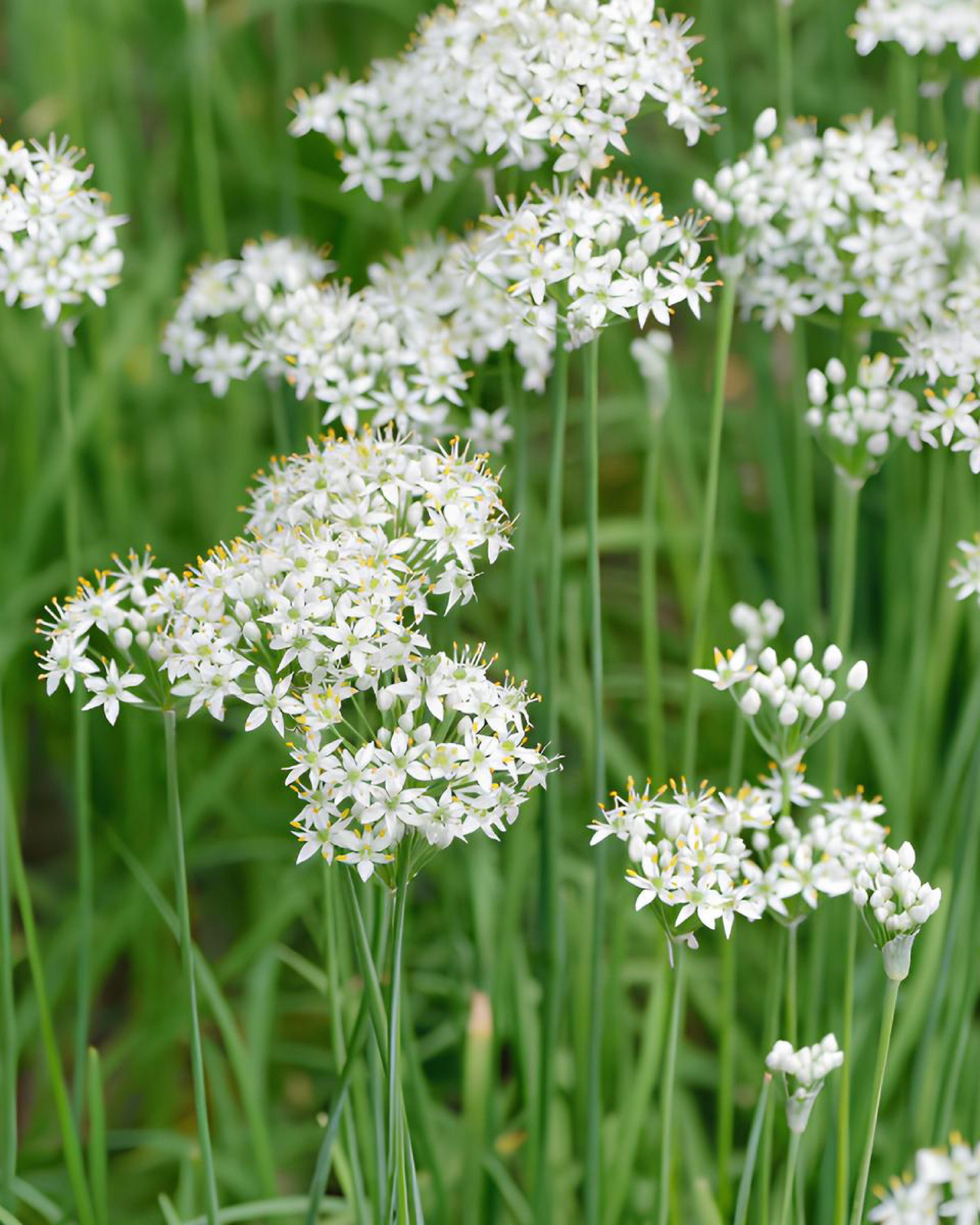 Foglie lunghe, sottili e verdi, persistenti durante la stagione vegetativa e aromatiche; aroma delicato simile all’aglio