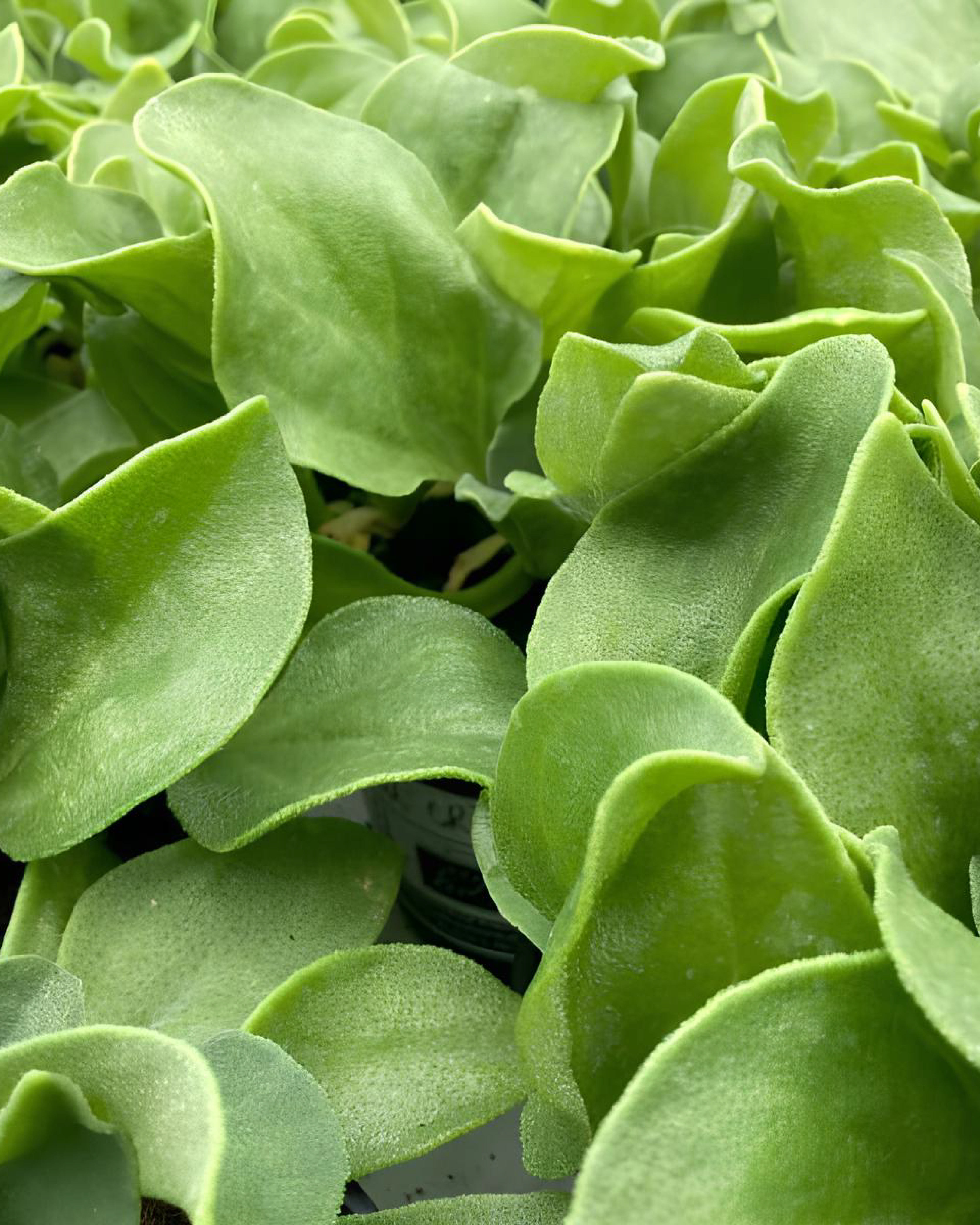 Foglie succulente e carnose, ricoperte da piccole vescicole trasparenti che fungono da riserva d’acqua; colore verde brillante, decorativo e persistente durante la stagione vegetativa