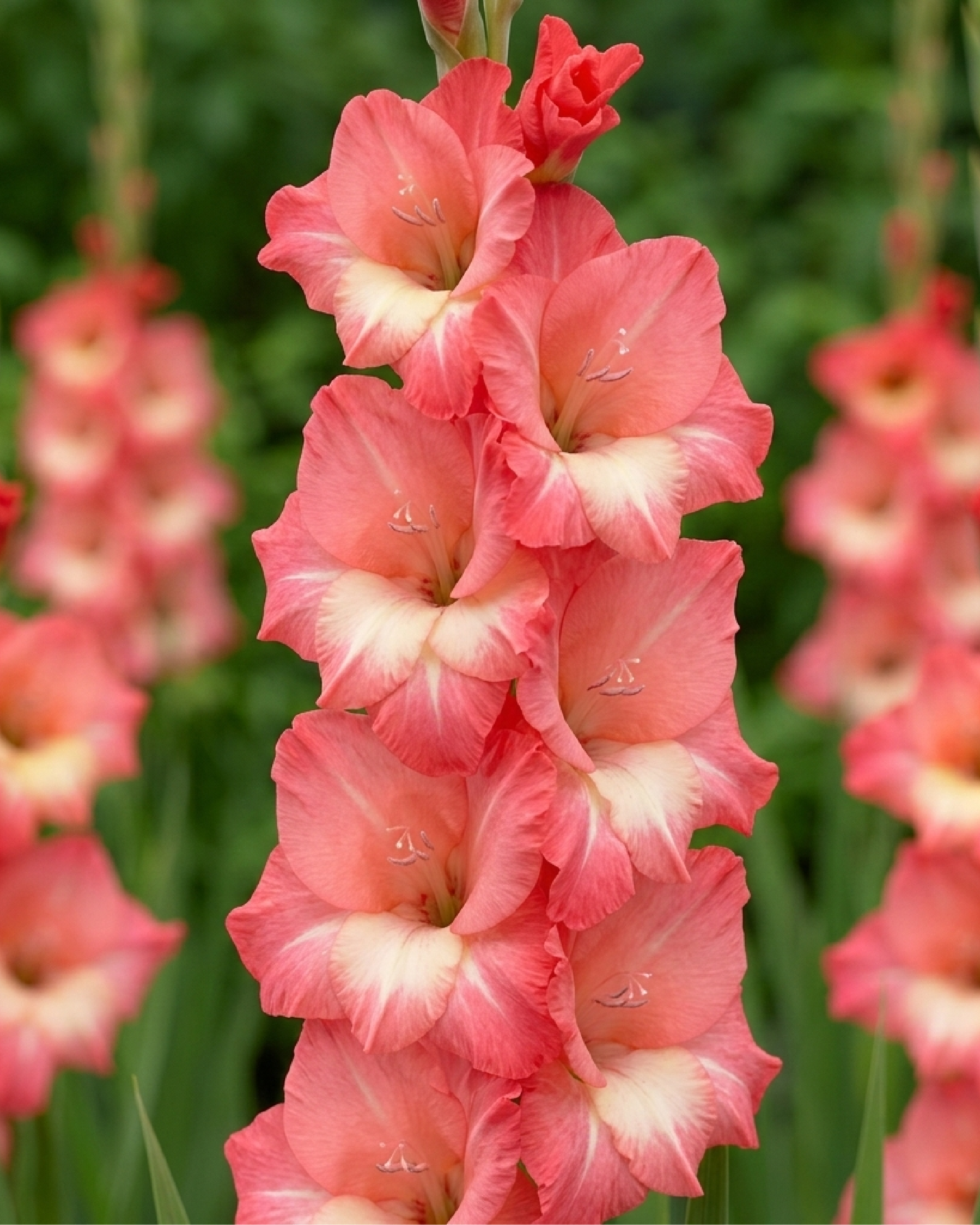 Fiori grandi di colore arancio brillante, disposti su spighe lunghe 60–70 cm