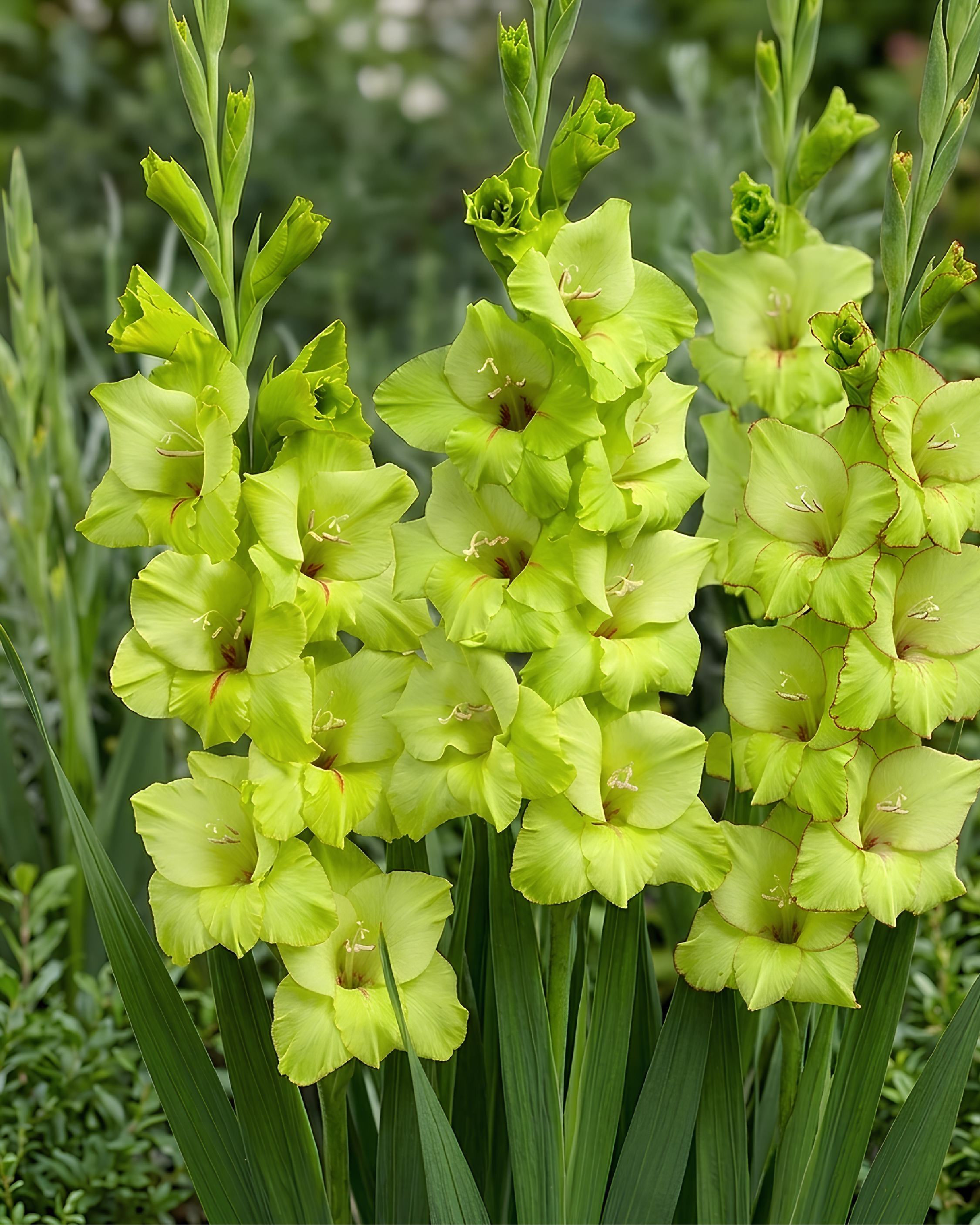 Fiori grandi, eleganti, di colore verde chiaro brillante, disposti su spighe lunghe 60–70 cm