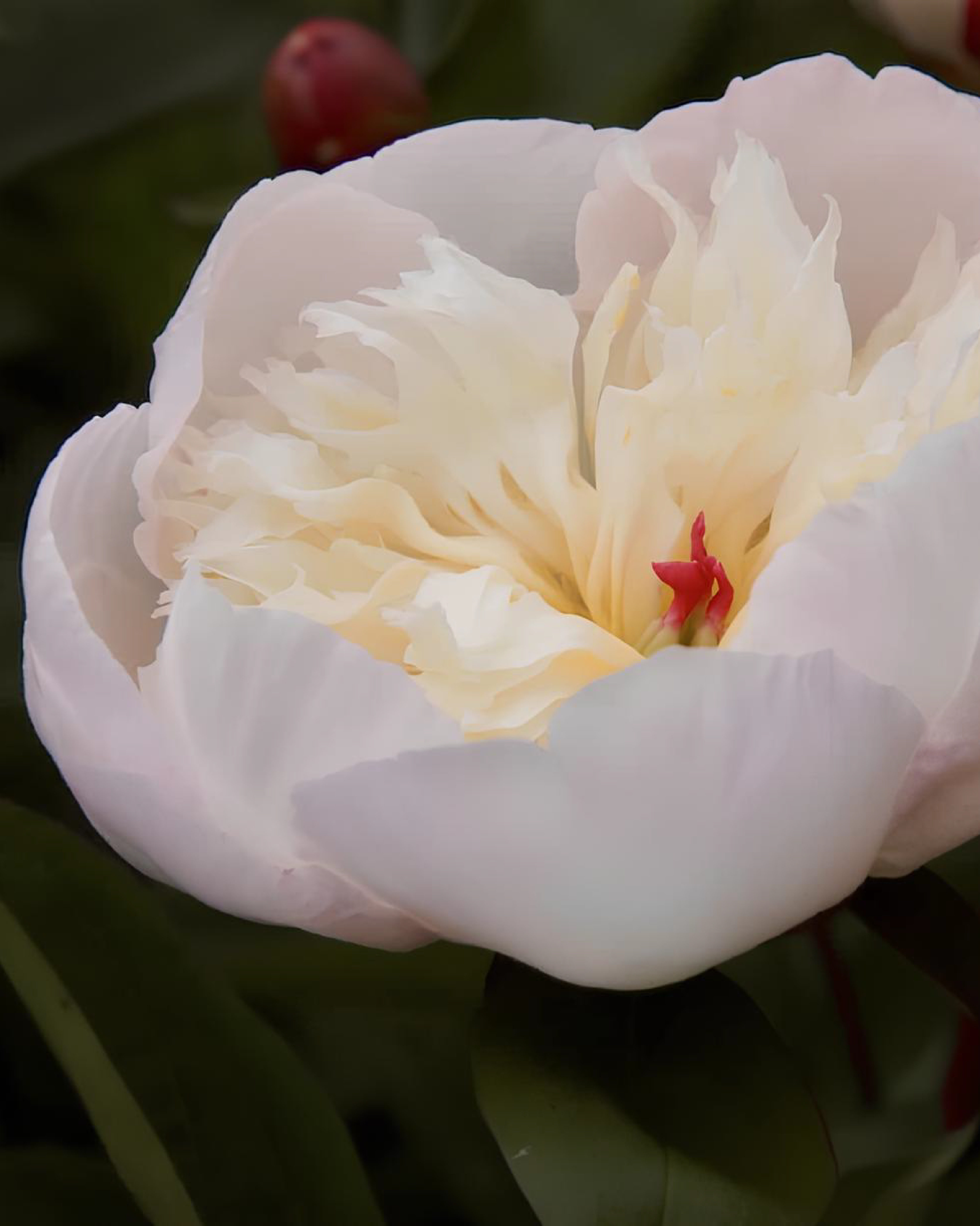 La Peonia ‘Immaculée’ è una peonia erbacea raffinata ed elegante, apprezzata per il suo fiore grande, doppio o semidoppio, dalla forma globosa o di tipo giapponese. Il colore è bianco luminoso, impreziosito da uno schizzo rosso al centro. Il fiore si apre con una delicata sfumatura rosa, che schiarisce progressivamente fino al bianco durante la maturazione, aumentando notevolmente di dimensioni. È profumata e produce numerosi boccioli laterali, che prolungano la durata della fioritura.