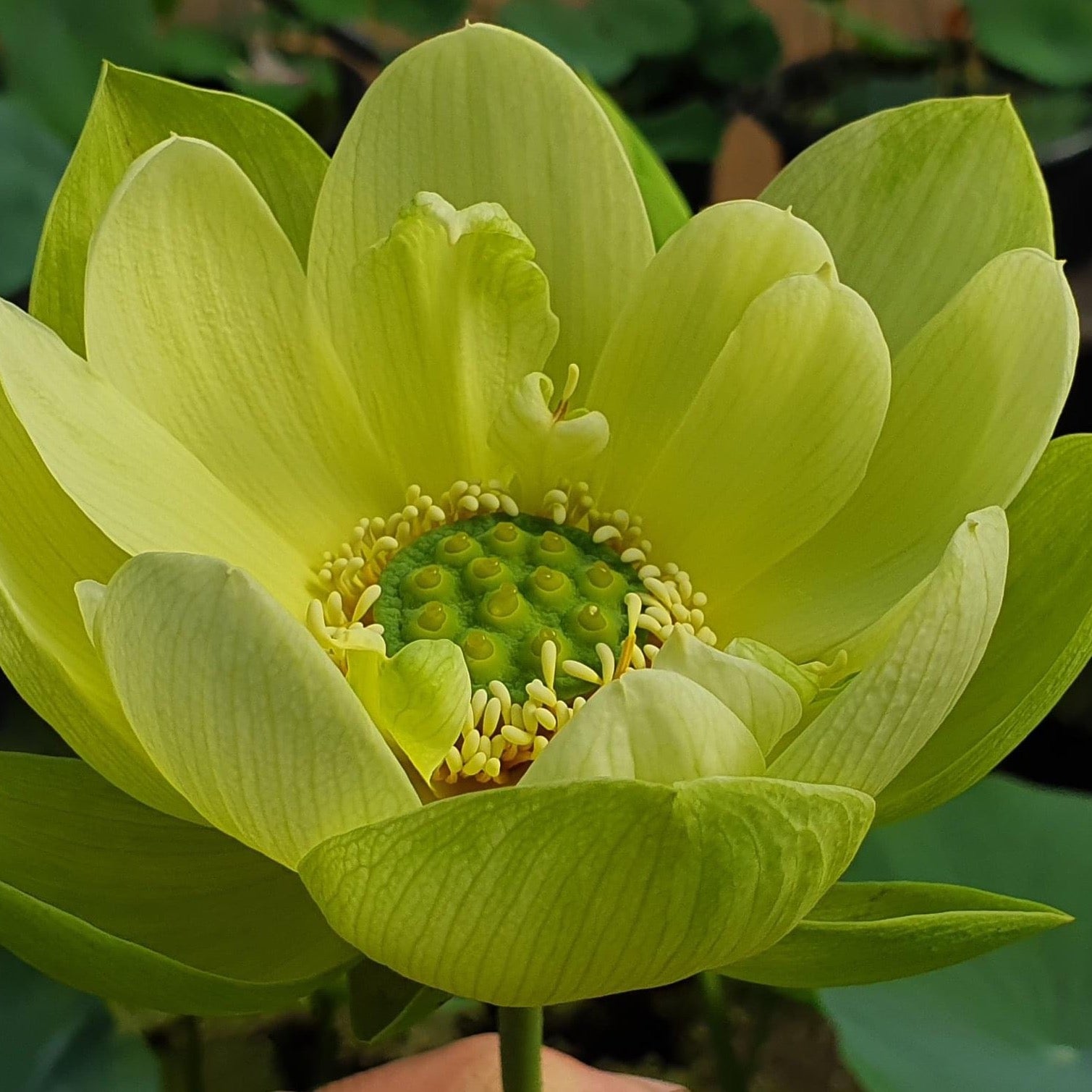 Il Nelumbo Jade in Jinling è un ibrido di fior di loto cinese altamente fiorifero, ideale per un tocco esotico nel giardino o in un contenitore. Con un rizoma a forma di banana, si sviluppa velocemente e produce foglie galleggianti verdi e fiori gialli doppi con sfumature verdi. Resiste al gelo e sboccia in tarda primavera ed estate.