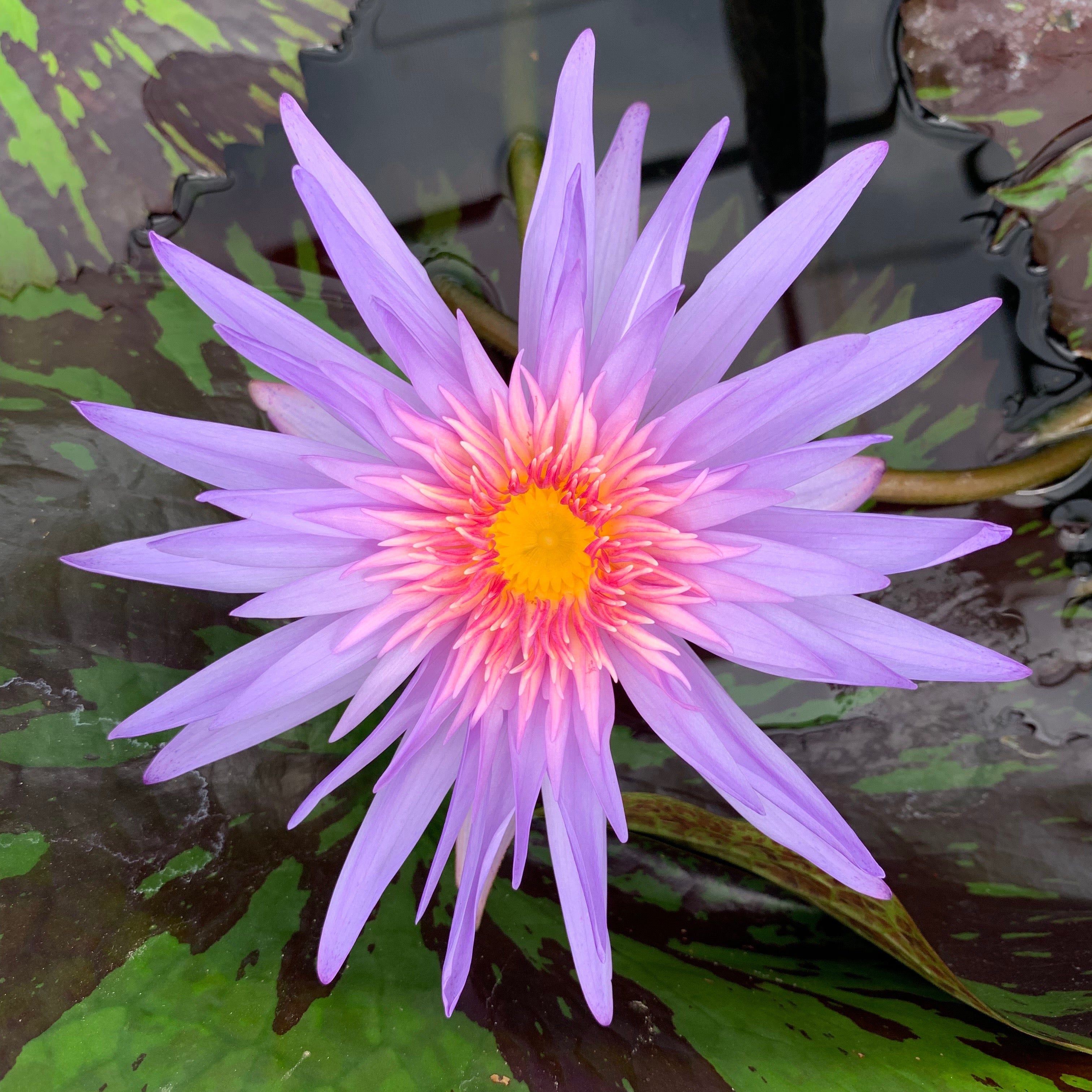 La Ninfea Foxfire è una pianta tropicale con grandi fiori stellati blu-viola e foglie ornamentali maculate. Fiorisce abbondantemente, aggiungendo colore e bellezza al tuo giardino. Ideale per creare un'atmosfera tropicale e attirare farfalle e uccelli.
