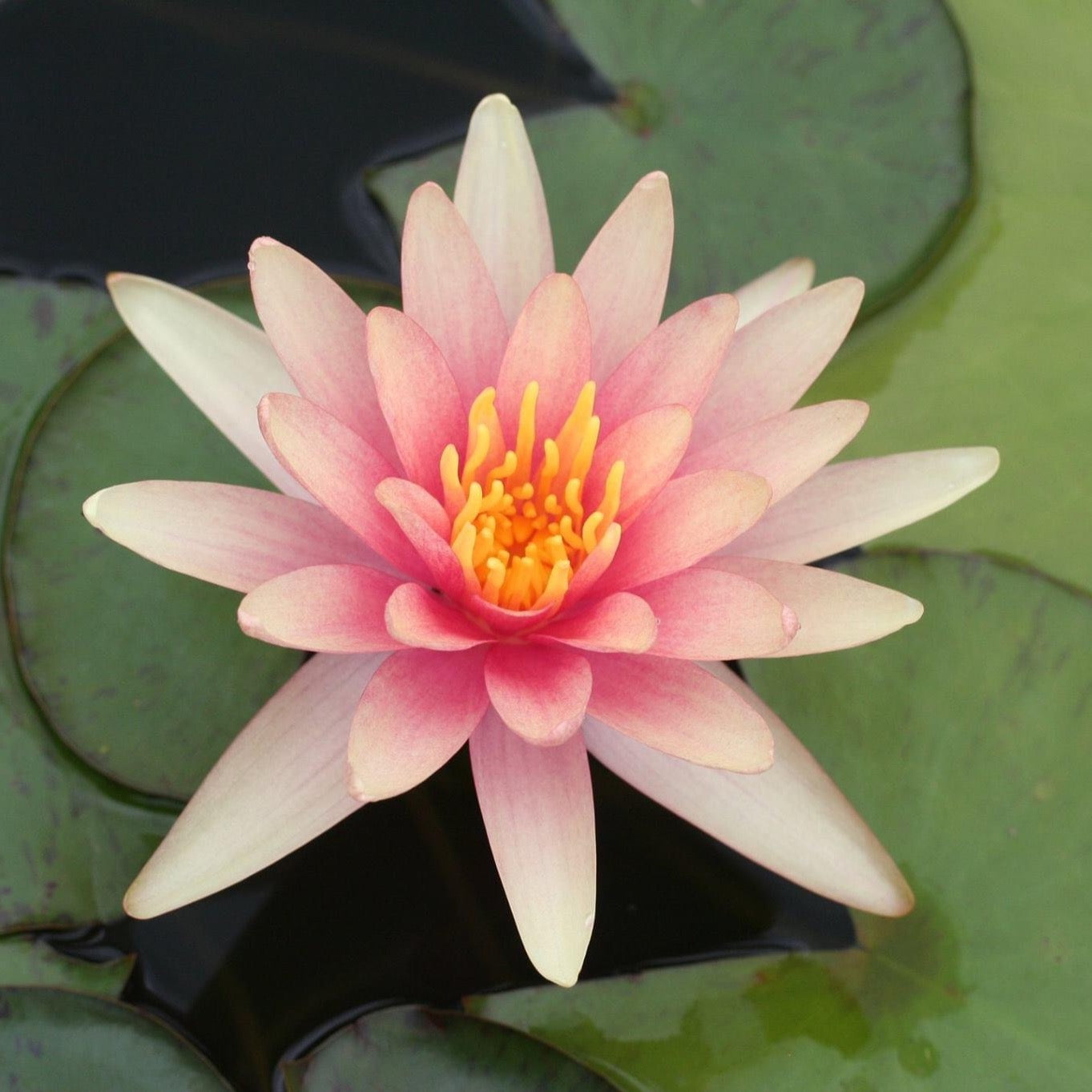 Ninfea Little sue: La ninfea nana dal fiore arancione pesca, foglie verdi con venature marroni. Rustica e resistente al gelo, fiorisce da aprile a settembre. Perfetta per un vaso da 18cm, raccomandiamo 2-3 capsule di concime. Esposizione ideale: sole o mezz'ombra. Disponibile tutto l'anno.
