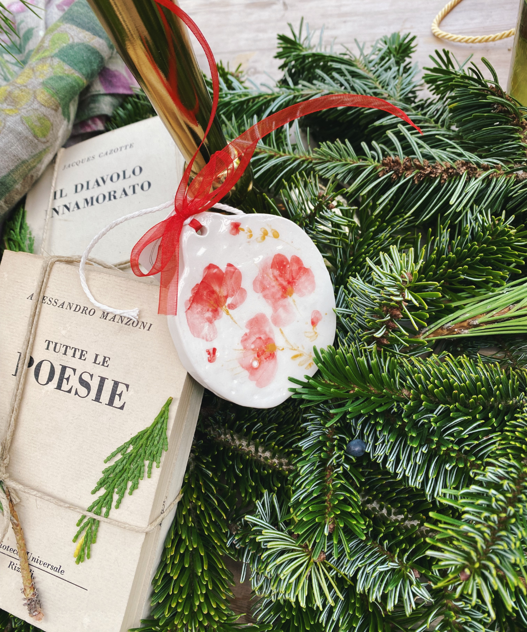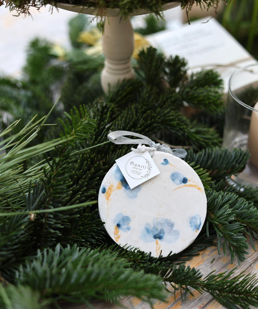 Pendente in ceramica per l’albero di Natale, modellato a mano per offrire un dettaglio raffinato che cattura la luce con naturale semplicità.