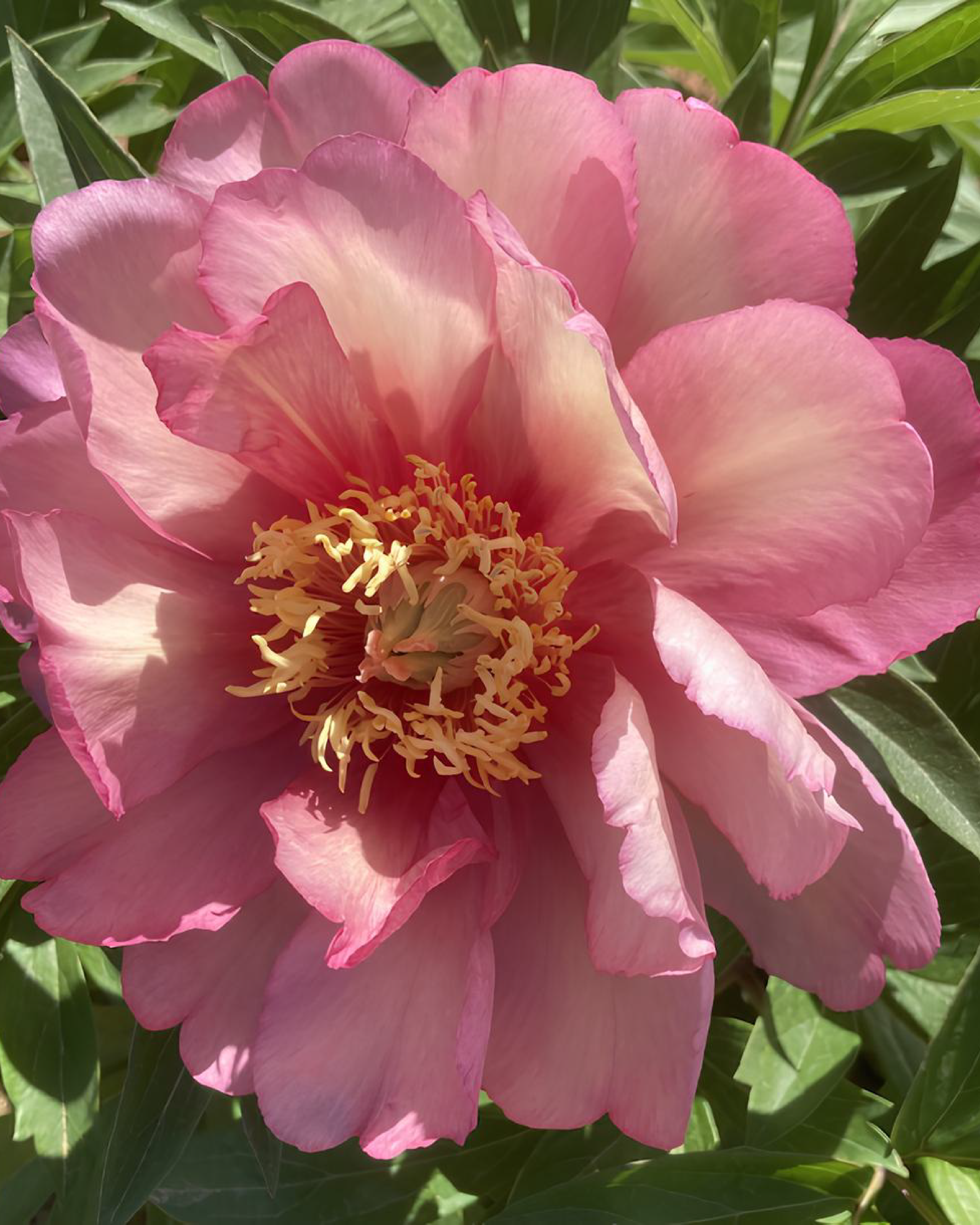 La Peonia ‘Julia Rose’ è un ibrido intersezionale Itoh, frutto dell’incrocio tra peonia erbacea e peonia arbustiva, caratterizzata da una fioritura spettacolare e dai colori sfumati. I fiori semplici o semidoppi si aprono in un vivace rosso ciliegia per poi sfumare gradualmente in rosa, albicocca e giallo tenue, creando un effetto cromatico continuo sul cespuglio maturo.