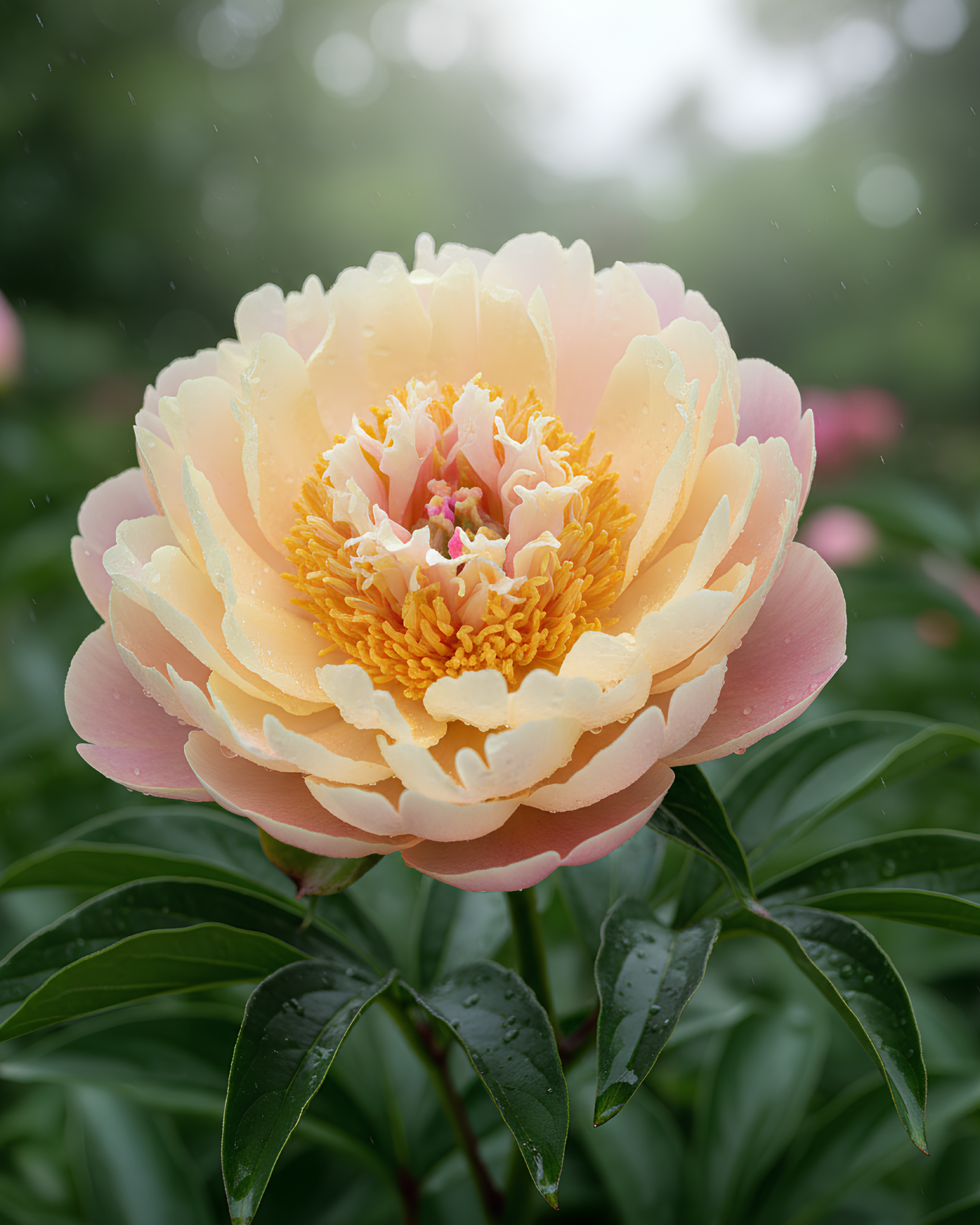 La Peonia Itoh ‘Singing In The Rain’ è un ibrido intersezionale molto fiorifero e resistente, apprezzato per i suoi grandi fiori semidoppi cangianti dal rosa al giallo, capaci di creare un suggestivo effetto bicolore sulla pianta. Ideale per giardini ornamentali, bordure e aiuole soleggiate, unisce eleganza, robustezza e lunga durata della fioritura.